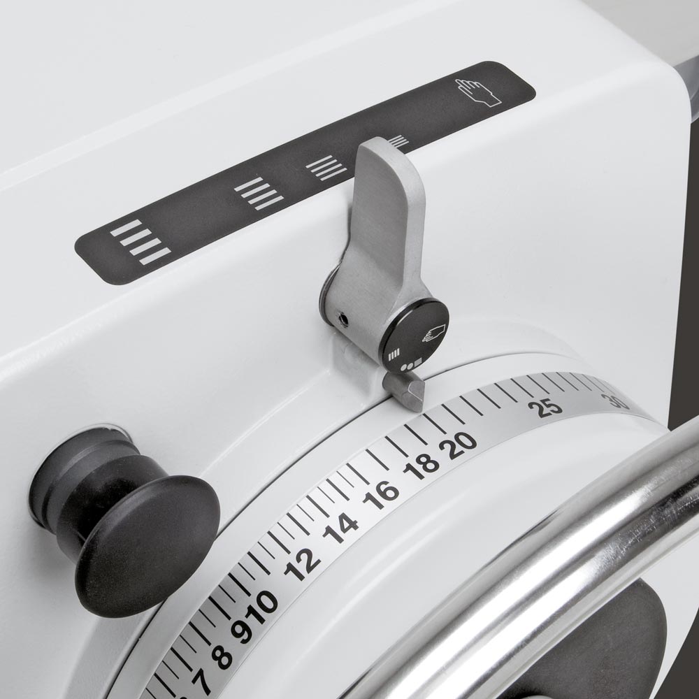 Mit Manomat und Automat verarbeiten Sie schnell besonders grosse Teigmengen. Sie arbeiten auch im mehr-schichtigen Einsatz mühelos. Zahlreiche durchdachte Details sorgen für maximalen Bedienerkomfort. Das Design ist äusserst robust und glatte Flächen aus rostfreiem Edelstahl machen die Reinigung einfach. Teigbänder haben die Tendenz, Wellen zu schlagen, zu stauen oder zu reissen. Mit dem Synchrongang der Manomat und der Automat können Sie dieses Problem lösen. Drücken Sie den Umschalthebel weiter herunter: Der Synchrongang wird eingeschaltet und die Einlaufgeschwindigkeit angepasst. So können Sie selbst extrem dünne Teigbänder einfach und sauber ausrollen.