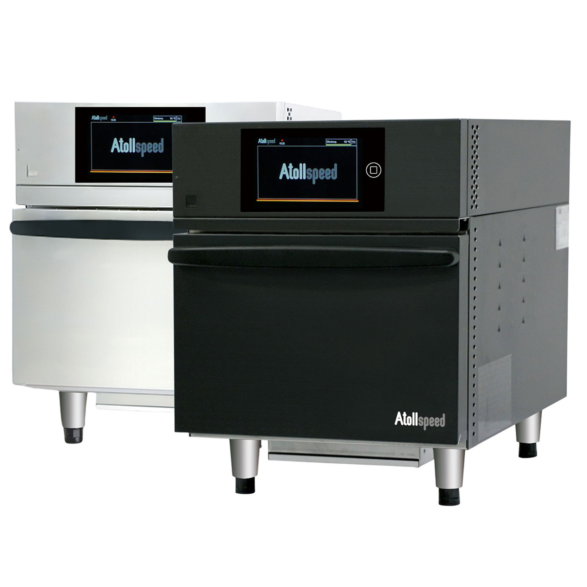 Heisse und knusprige Snacks in wenigen Sekunden. Ein Hybridofen, der Heissluft, Aufprallhitze und Mikrowelle in einem Gerät kombiniert. Dank der perfekten Kombination von Impingement- und Mikrowellen-Technologie verkürzt Atollspeed Ihre Back-, Brat- und Garzeiten um das bis zu Zehnfache. Perfekte Bräunung und Krustenbildung wird durch die regelbare Aufprallhitze in extrem kurzen Zeiten garantiert. Die neu entwickelte Touchscreen-Steuerung ist kinderleicht zu bedienen. Programme werden über Pictogramme ausgewählt und der Backprozess kann beginnen. Atollspeed eignet sich ideal für Bäckerei-Filialen, Coffee-Shops, Tankstellen-Shops, Restaurants, Hotels, Bars, Kiosks… einfach überall, wo Kunden Snacks und kleine Mahlzeiten in kürzester Zeit und bester Qualität erwarten.