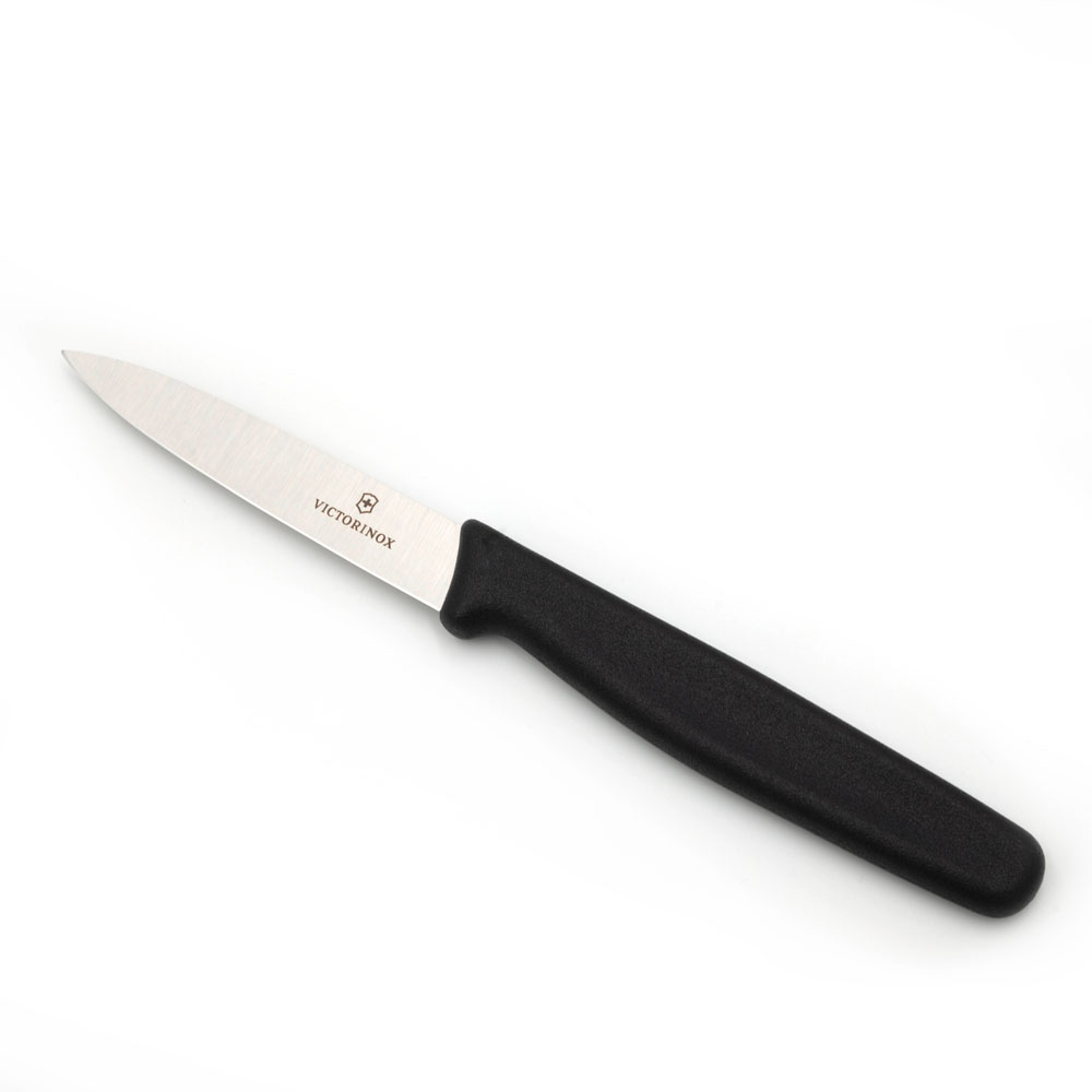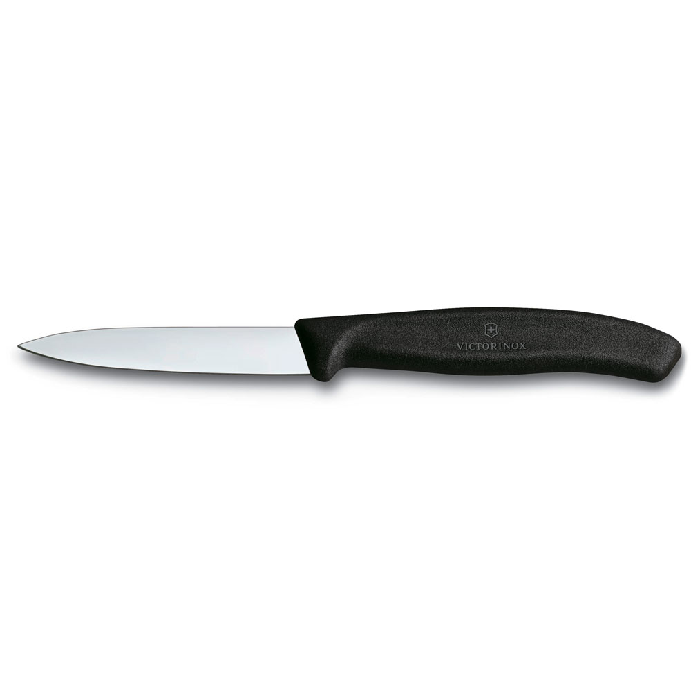 Das Gemüsemesser mit glatter, spitzer Klinge und schwarzem Kunststoffgriff aus dem Hause Victorinox. Ob Schneiden, Würfeln oder Hacken – das Rüstmesser meistert jede Aufgabe mit optimaler Wendigkeit. Es ist aus widerstandsfähigem, rostfreiem Stahl gefertigt. Dank seiner ergonomischen Form liegt das Messer perfekt in der Hand. Entdecken Sie diesen kompakten Küchenhelfer für jeden Tag. Leicht zu reinigen und spülmaschinengeeignet.