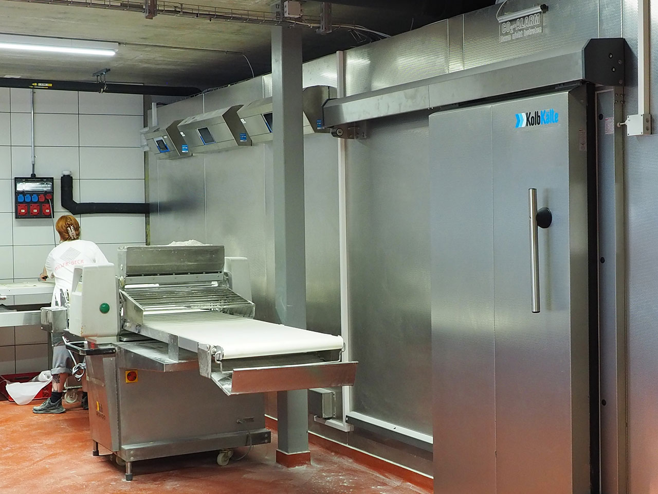 La modernisation a commencé dans l’ancien fournil : les anciens armoires de fermentation ont été remplacés par deux nouvelles installations PATT, et une nouvelle chambre froide a été ajoutée. Le sol de la boulangerie a été entièrement refait – une base essentielle pour la suite du chantier.